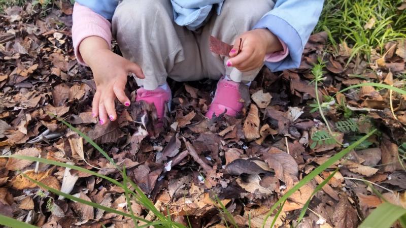 何故か しゃがんだまま 枯葉を わしゃわしゃと 握ったり ちぎったり
