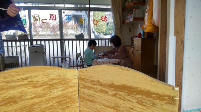 食べた後(ごっこあそびで)に ちゃぶ台横で 寝転がって 足をバタバタして遊んでみたり