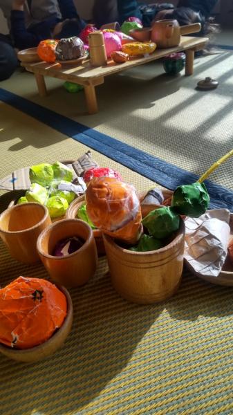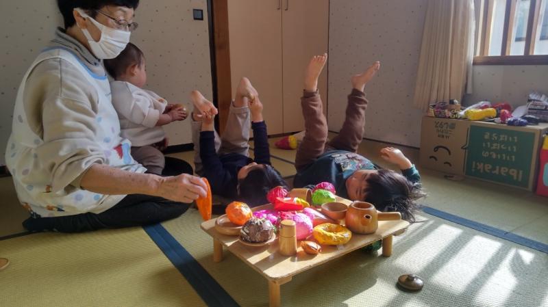 食べた後(ごっこあそびで)に ちゃぶ台横で 寝転がって 足をバタバタして遊んでみたり
