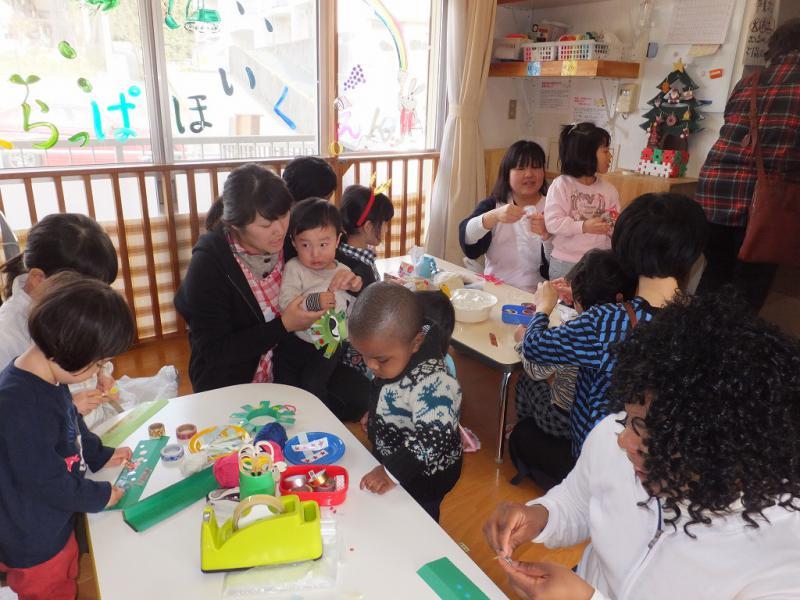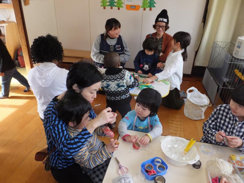 初めのうちは、お買いもののお客さまが多かったのですが、そのうちこどもたちがやってくると、クリスマスオーナメントを作るコーナーは、大賑わい!