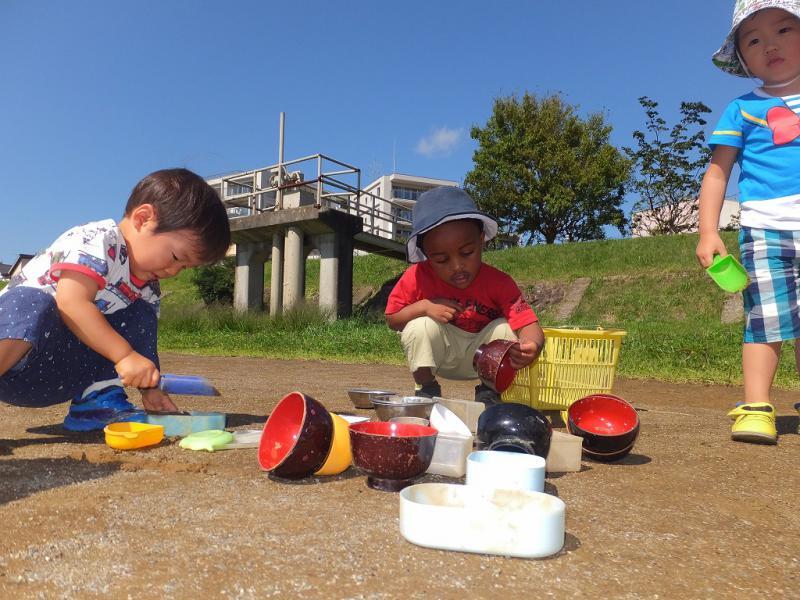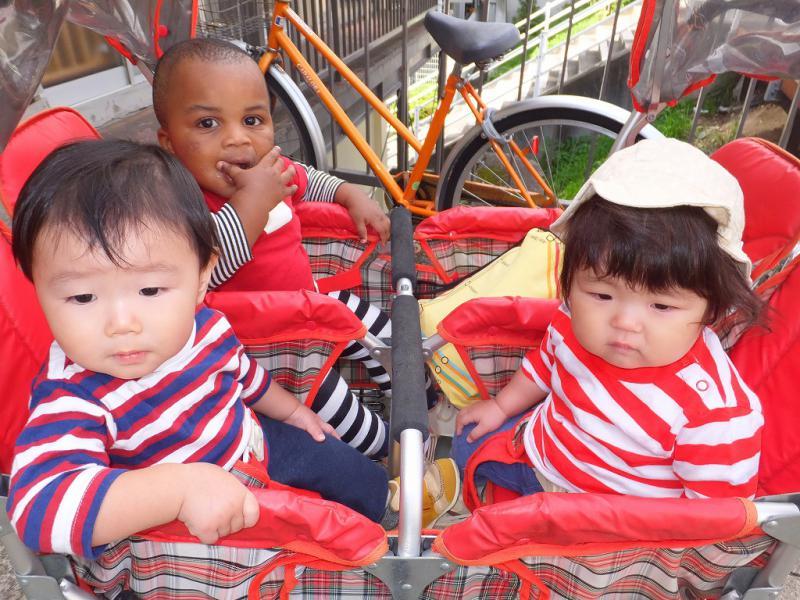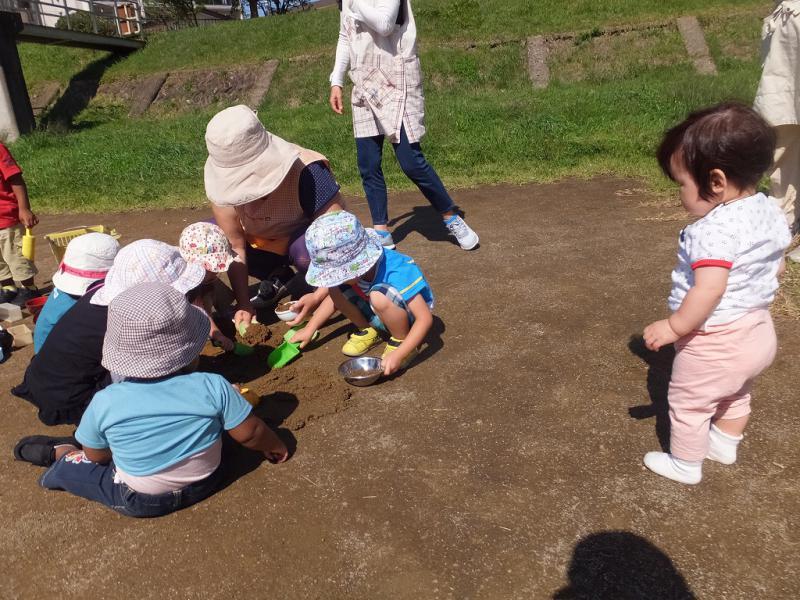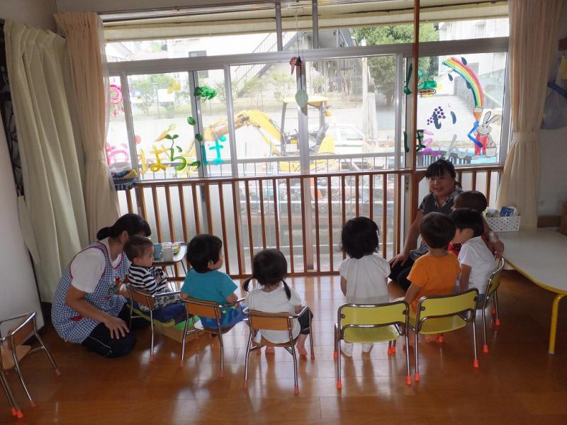 起きている間中、重機、重機の一日でした。おやつや集まりの時にも。外が気になって仕方のないこどもたち、とうとう外を向いて座ることになりました。まぁ、めったにない機会ですからね!