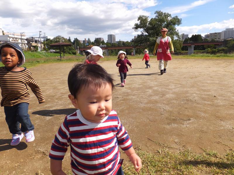 ドドドド、と響いてきます。なにやってんのかな、ちょっと見てこようっと! 台風も去り、きれいな青空が広がっています。きんもくせいが咲き始め、かおりが漂ってきます。どんぐりもすこしずつ大きくなり、萩や野ぶどうに秋を感じる季節です。