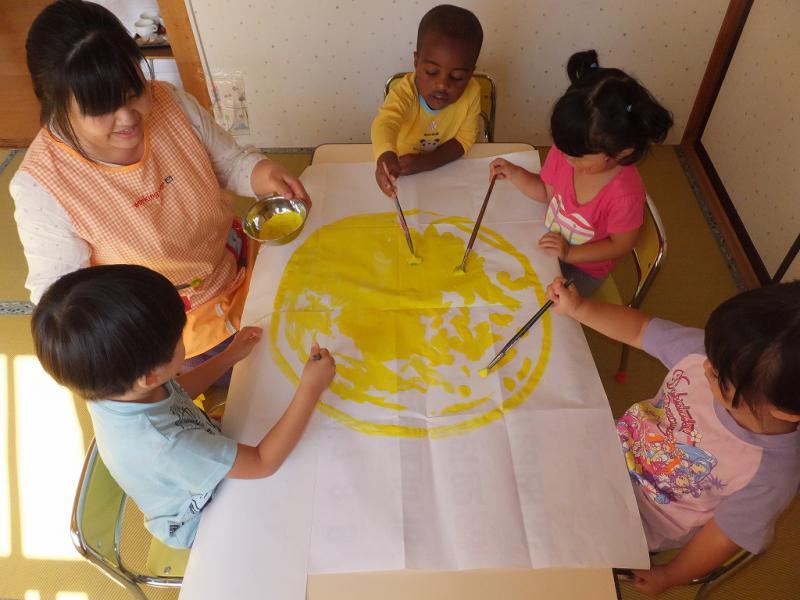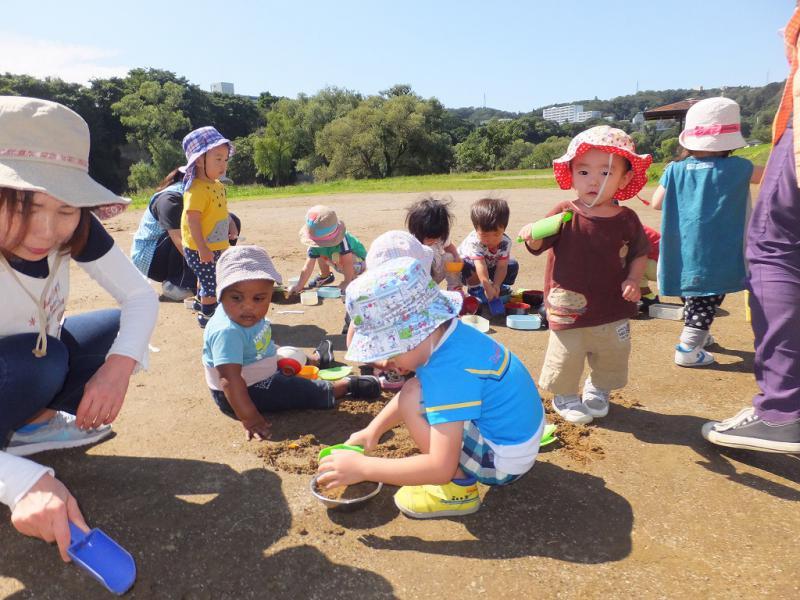 起きている間中、重機、重機の一日でした。おやつや集まりの時にも。外が気になって仕方のないこどもたち、とうとう外を向いて座ることになりました。まぁ、めったにない機会ですからね!