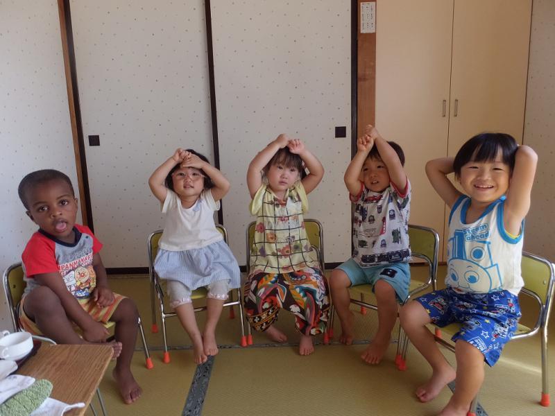 大活躍(?)です。秋にむけて、ますますいたずらに磨きがかかるのかもしれません!2歳児クラスは口達者、1歳児クラスは自己主張、とそれぞれ成長している保育園、さて秋はどんな進歩がみられることやら・・・楽しみです。