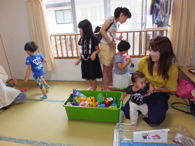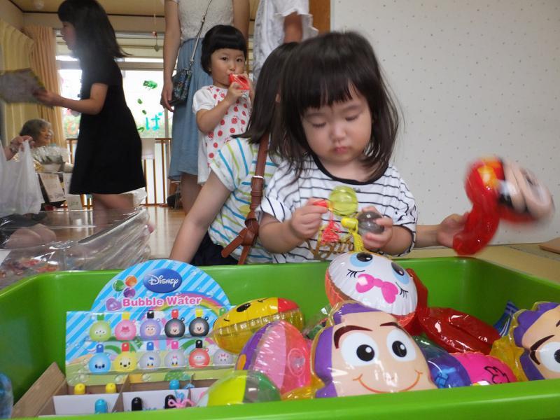 朝早くから、並んでくださる年配のご常連をはじめとして、まぁ、お客様がひきもきらず、という盛況。になりました。去年に引き続き、ゲームコーナーはおかあさんたちの担当で、A君パパの力作の玉入れゲーム(っていうんだったかな?)やら、プールをつかったお菓子釣りゲームにこどもたちは大喜び、景品をたくさんゲットしてにんまりです。いつも使うプールに今日は水がない、と怒っていた1才のMくんなんかもいたりして、大笑いです。職員手作りのラスクや鶏の唐揚げ、A君ママ手作りの牛乳寒(ご夫婦でありがとう!)などなど、喫茶コーナーも充実しておなかも満たされ、例によって例のごとく、卒園生との会話もはずみます。ことしはカブトムシまで登場したものですから、Hちゃんパパがつきっきりで、カブトムシ係りを担当してくれます。引き気味の母を尻目に指に飾ったり。手に乗せたり、とうとうカブトムシを連れて帰ったこどもたちもいて、さてどうなることやら!お買い物のコーナーも、みなさんショッピングを楽しんで下すったみたい、雨にもめげず大荷物でお帰りになったのがその証拠(?)、明日は10歳の誕生日、といっていたYちゃん、今頃バースディパーティーかな?昨日までいっしょに遊んでいたみたいに、仲良く唐揚げをほうばっていた二人も楽しそうだったな!いろいろ大変なこともあるけれど、これだからバザーはやめられないんだよね。さて、次は芋煮会、そしてクリスマスのミニバザー、遊びに来てね!待ってるから・・・