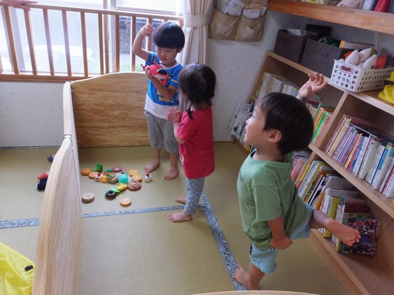 夏休みをとるご家庭もチラホラあって、お休みの子も日ごとに増え、ちょっぴり寂しい保育園です。暑さや高い湿度で疲れが見えるこどもたちですから、お休みは、ちょうどいい機会になります。おうちでゆっくりできるといいですね!