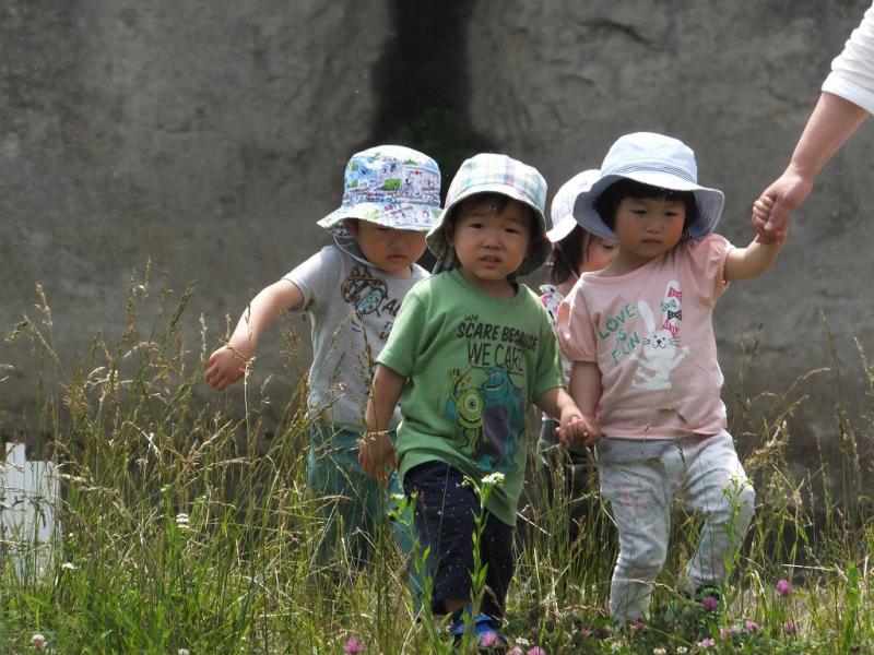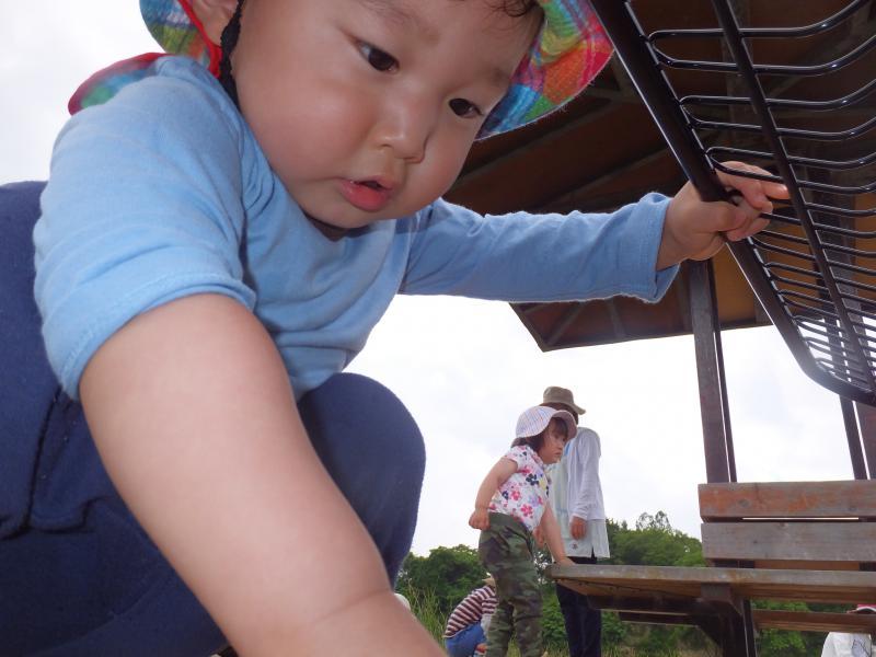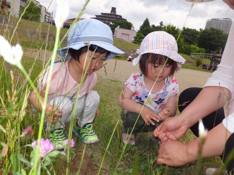 梅雨に入ったとはいえ、結構いい天気が続いています。先週末には、今年初めての泥遊び。泥んこが乾いて白っぽくなった0才児さんたちも、意気揚々とベビーカーに乗せられて帰ってきました。川から水を汲んできて泥んこをつくり、おだんごをつくったり、型抜きをしたり、泥にはちょっと抵抗のある子もいるにはいるけど、泥んこ遊びってやっぱり楽しいよね。すこしずつ慣れてくれると嬉しいな!