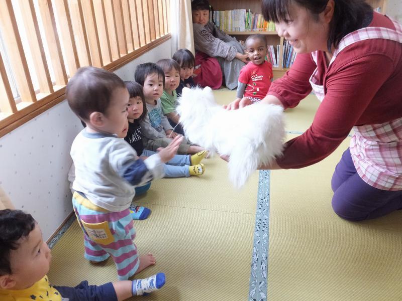 夕方、ともだちが少なくなったころ、Sくんが動物園をつくりました。テーブルを1台、境にして「先生はそこからはいっちゃだめなんだよ、そこからみててね」ライオン大好きなSくん、いつも本物みたいに吠えているのですが、今日はどうやら「動物園のライオン」になったようです。ライオンはジャンプも得意なんだよ、といいながらとんでみせたり、本棚のかげでお昼寝したりしているうち、ちょっと寂しくなったようです。先生、入ってきて、一緒に食べよう、と誘うので、わたしもライオンになって動物園のなかに入りました。草を食べるからね、うちのライオンは草食ライオン、ふたりで草を食べました。ブドウ味の草、イチゴ味の草、むしゃむしゃおいしく食べました。食べ終わったらすぐさま、見物人に戻されてしまいましたけど・・・。S君のライオン、何か月続いているのかなー、咆哮はほんとに上手なんですよ