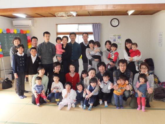 今日は卒園式、おひさま原っぱではお別れ会と進級お祝会が一緒です。ひところのように、20人近いこどもがいて、その親、兄弟、じじばばも・・・というわけにはいかず、こじんまりした会でしたが、去年、該当者がいなくてお休みした分、なんだか妙に新鮮でした!ひとりは一足早く、先週さよならだったので、今日の主役は4人、ちょっとおしゃれして、緊張して並んだこどもたちです(一番緊張していたのはこどもたちの後ろに控えた聡子先生と司会のゆき子先生だったかも)、修了証書をもらい親子そろってご挨拶、おかあさんたち、先生たちは、大きくなったなぁと感慨深くおもわずウルっときてしまいました。こどもたちは、といえばこれはなかなか立派、見守るチビさんクラスのみんなも誰一人騒ぐこともなくへぇ!と感心してしまいました。ちょっぴりしんみりしたあとは、みんなで体操タイム、はたらくくるまや、アンパンマン体操、上手だったねぇ!修了証書以外はいつもの保育とほぼ同じ中身、みんなの大好きな“もりのこみち、さんぽにいこう、おおかみなんかこわくないよ”まで登場して大盛り上がり、さぁにんげんをたべにいこうかな、のせりふを聞いた途端、とっとと家族のもとに逃げ帰った(的確な判断)こどもたちのおかげで思いがけず全体をまきこんだ展開になって、とっても楽しいゲームができました。すっかりリラックスしたあとはお待ちかねのお食事タイムです、今回は役員さんの配慮で、それぞれ好きなお弁当を注文するという画期的なランチになりました。おしゃべりがはずみ、食欲も全開、ほんとうに楽しいひとときでした。さよならは寂しいけれど、また会う喜びもあるものね、みんな、またもどっておいでね、待ってるよ!!