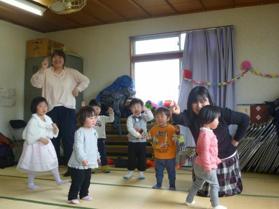 今日は卒園式、おひさま原っぱではお別れ会と進級お祝会が一緒です。ひところのように、20人近いこどもがいて、その親、兄弟、じじばばも・・・というわけにはいかず、こじんまりした会でしたが、去年、該当者がいなくてお休みした分、なんだか妙に新鮮でした!ひとりは一足早く、先週さよならだったので、今日の主役は4人、ちょっとおしゃれして、緊張して並んだこどもたちです(一番緊張していたのはこどもたちの後ろに控えた聡子先生と司会のゆき子先生だったかも)、修了証書をもらい親子そろってご挨拶、おかあさんたち、先生たちは、大きくなったなぁと感慨深くおもわずウルっときてしまいました。こどもたちは、といえばこれはなかなか立派、見守るチビさんクラスのみんなも誰一人騒ぐこともなくへぇ!と感心してしまいました。ちょっぴりしんみりしたあとは、みんなで体操タイム、はたらくくるまや、アンパンマン体操、上手だったねぇ!修了証書以外はいつもの保育とほぼ同じ中身、みんなの大好きな“もりのこみち、さんぽにいこう、おおかみなんかこわくないよ”まで登場して大盛り上がり、さぁにんげんをたべにいこうかな、のせりふを聞いた途端、とっとと家族のもとに逃げ帰った(的確な判断)こどもたちのおかげで思いがけず全体をまきこんだ展開になって、とっても楽しいゲームができました。すっかりリラックスしたあとはお待ちかねのお食事タイムです、今回は役員さんの配慮で、それぞれ好きなお弁当を注文するという画期的なランチになりました。おしゃべりがはずみ、食欲も全開、ほんとうに楽しいひとときでした。さよならは寂しいけれど、また会う喜びもあるものね、みんな、またもどっておいでね、待ってるよ!!