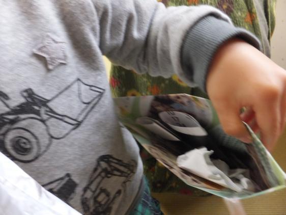 さて、2017年最初の日だというのに、雨!原っぱに新年のごあいさつをしに行けたら良かったね・・・ちょっと残念でした!年末年始のお休みを過ごしてきたこどもたちは、ちょっぴりまるくなったような!おじいちゃんおばあちゃんのところに行ったり、家族でのんびり過ごしたり、それぞれに楽しんできたようです。すっかりわがまま癖がついて(眠かったせいもあり)泣きわめいていた子もいるにはいましたが、おおかたは、昨日も来ていたよ、みたいにお休み明けのかげもなく、静かに楽しく、好きなことをして遊んでいました。きょうは紙のポシェットをつくってもらい、シールをいっぱい貼って肩にかけ、お買い物に行ったり、お餅(紙の)をいれてみたりと、のんびりムードの保育園。お赤飯のお昼ご飯を食べて、さっき布団に入ったところです。ことしもみんな元気で、楽しい1年になりますように!