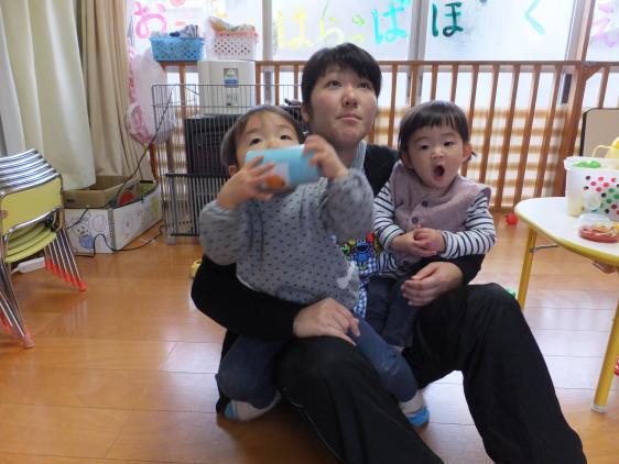 ことしの保育園は明日で終了。昨日あたりから、ぽつぽつとお休みの子もいて、いつになく静かな保育園です。今日は雨模様でお散歩に行くことができず、それぞれのクラスが、それぞれに過ごしていました。2歳さんは粘土、1歳さんはままごとをしたり、新聞紙を丸めたりちぎったり・・・。人数が少ないので先生ともいつもよりもっと密に遊ぶことができて、満足そうなこどもたち!自分が一番甘えたい、かまってもらいたい・・・おかあさんを独り占めしたいのとおんなじことで、小規模で人数がすくなくてもやきもちを焼いたり、自分をアピールしたり、こどもたち、結構やってます。抱っこされたり、一生懸命のおしゃべり(聞き取りにくいんです!)を、そうなの、うんうん、と聞いて受け答えしてもらうのは、ほんとにうれしいことなんですね。年末年始のお休み、ご家族のふれあいタイムを大切に、楽しく過ごしてくださいね。(甘やかしにならない程度にね)新しいとしに、笑顔で戻ってくるのを待ってますよ!