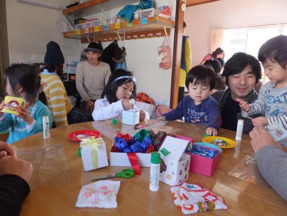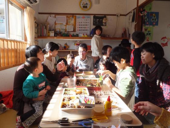 12月とは思えないようなあたたかな日でした。「雪虫」ってなぜか暖かい日に飛んでいるような気がします。真っ白い、ふんわりやわらかそうな雪虫がアブラムシの仲間だって、ほんとでしょうかね!なんだか幻滅です。しばらくHPの更新もしないでいたら、いつのまにか12月になってしまいました。来月の今頃はお正月、はやいですねぇ・・・びっくりしてしまいます。今日はバザーとオープンハウスでした。卒園生がかよっている学校や幼稚園などが「行事」というところも多く、どれだけのお客さまがあるかと心配でしたが、お天気に誘われたのか、なかなかの盛況でほっとしました。毎年、クリスマス関連の製作をしているので、楽しみにしていてくださる方も多いようです。今回は、紙コップのツリー、、プレゼント用の箱、ポプリのケーキのみっつをつくりました。みんな、一生懸命、上手につくりましたよ。お家に飾って、クリスマス気分をもりあげてくれるといいな!みんなで集まってわいわい楽しく手を動かしたり、おしゃべりしたり、そんな時間がとても有意義に思えます。保育園を続けていてよかったなと思えるひとときを、ありがとう!!