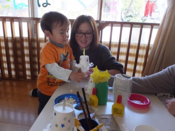 12月とは思えないようなあたたかな日でした。「雪虫」ってなぜか暖かい日に飛んでいるような気がします。真っ白い、ふんわりやわらかそうな雪虫がアブラムシの仲間だって、ほんとでしょうかね!なんだか幻滅です。しばらくHPの更新もしないでいたら、いつのまにか12月になってしまいました。来月の今頃はお正月、はやいですねぇ・・・びっくりしてしまいます。今日はバザーとオープンハウスでした。卒園生がかよっている学校や幼稚園などが「行事」というところも多く、どれだけのお客さまがあるかと心配でしたが、お天気に誘われたのか、なかなかの盛況でほっとしました。毎年、クリスマス関連の製作をしているので、楽しみにしていてくださる方も多いようです。今回は、紙コップのツリー、、プレゼント用の箱、ポプリのケーキのみっつをつくりました。みんな、一生懸命、上手につくりましたよ。お家に飾って、クリスマス気分をもりあげてくれるといいな!みんなで集まってわいわい楽しく手を動かしたり、おしゃべりしたり、そんな時間がとても有意義に思えます。保育園を続けていてよかったなと思えるひとときを、ありがとう!!