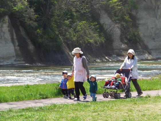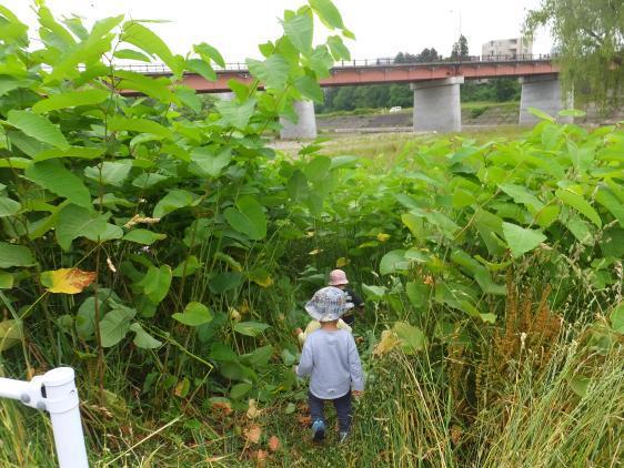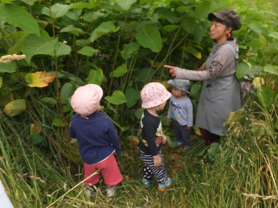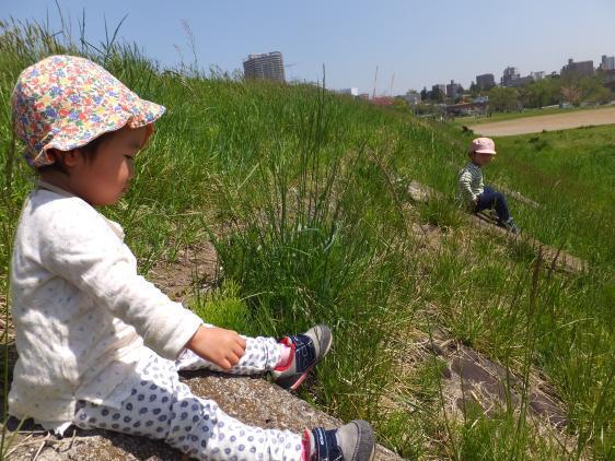 やれやれ、やっと写真をのせることができました!ちょっとコロボックルの世界みたいでしょう?いま、このいたどりはきられてしまったんですが・・・またそのうち、生えてくるけど、こんなには伸びないですよ。こどもたちにとってはちょっとしたジャングルみたいなもので、探検には最適なんですよ。ことしは川でおたまじゃくしの群れが生息しているらしいのですが、私はこのところお散歩のおともをしていないので、いまだ実物に遭遇していません。去年の豪雨で川の流れがかわったのでしょうか。保育園にいても静かな3階の仕事部屋にいると、蛙の声がしきりにきこえてきます。梅雨ですねぇ・・・!