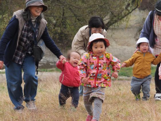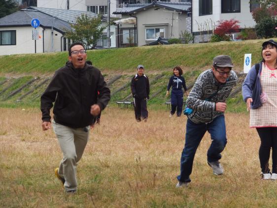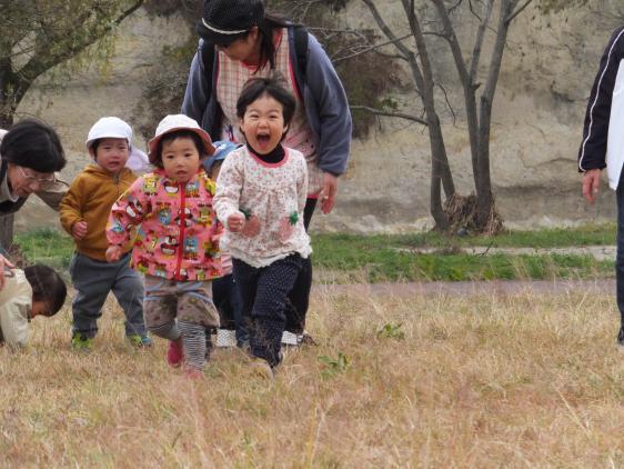 天気はどうだ?降水確率40%、ウーン微妙・・・芋煮会がはじまってこのかた一度も雨に降られたことがなかったのにィ、とどきどきしていたけれど、日に日に天気予報は上向きにかわり・・・31日は雲が多めながら(2,3粒時雨はきたものの)、一応の晴れとなりました!こどもたちが小さくて、以前のようにミニ運動会やウォークラリー、というわけにはいかないけれど、いつもの原っぱでいつものようにあそんでいる様子をおうちの方に披露することができました。(どうしてズボンのおしりに穴があくのか納得してもらったみたい!)ちいさい子たちのあいだには、やたらおおきくみえる卒園児がいて、彼らなりに旧交を温めながら賑やかに盛り上げてくれました。そして、いよいよお食事タイム(このころには陽も差してきて)、持参のおむすびと、山形風、仙台風、二種類の芋煮をおなかいっぱい食べました!ことしはおまけに炭火でじっくり焼き上げたお芋付(Hちゃんのおじいちゃん、上手ゥ!)で満足度120%。食べて遊んで、楽しかったねぇ。また、来年!在園児がすくなくなると準備をするあおぞら会の仕事も大変です。準備も、食べるのも両方楽しんでくださるおかあさん、おとうさんが増えてくれると嬉しいな。ビール片手に、芋煮つくりをしていたおとうさんたち、楽しそうでしたよ、次回はこんな親の方の楽しみ、味わってみてくださいな!!