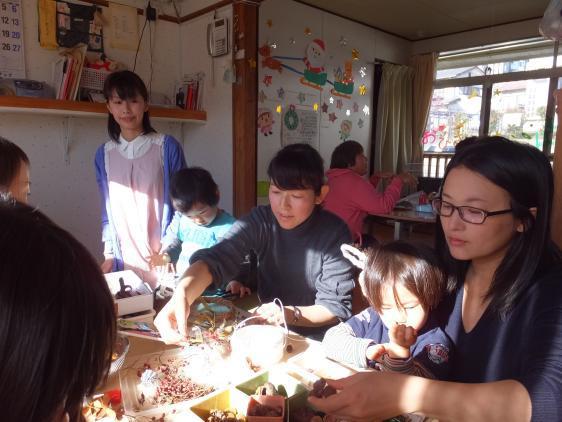☆ クリスマスのバザー、無事おわりました(1週間もまえに!)。バザーの売り上げもそこそこあり、まずまずの成功でした。クリスマスの飾りをつくるコーナーは、いつもとかわらぬ人気で、簡単なものから、ちょっとむずかしいものまで、みんな楽しそうにつくっていました。いつもながら夢中になって取り組むのは、お母さんたち!童心にかえるのかもしれませんね。
