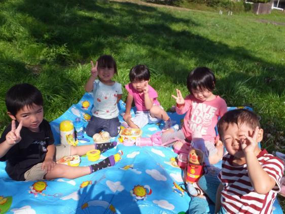 ☆ 2才児クラスのおべんとごっこ!2才児さんだけの特別プログラムでした。おかあさんのつくってくれたおべんとうをリュックにいれて意気揚々とでかけていったこどもたち、仲良し5人みんなでなかよくお食事!おいしかったんだろうねぇ、にっこにこで帰ってきました。また、行きたいんだって。おかあさん、お弁当、よろしくね!