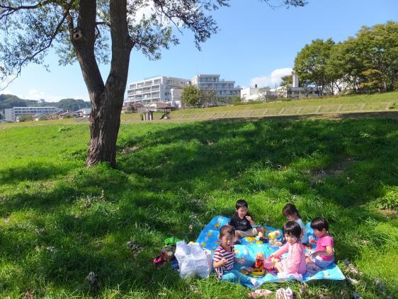 ☆ 今日は芋煮会、何回目の芋煮会になるのか、いまだかつて雨に祟られたことがないという記録を、今年も更新しました。いつも遊んでいる原っぱで、いつものように、但し、おうちの人たちと遊んだ今日のこどもたち。土手を上ったり、川に入ったり、原っぱでかけまわったり、、いつもこんなことをしているよ、ということをみてもらうのが今日の目標!おとうさんやおかあさんも、いっぱい遊んでくれたかしら?からだをうごかしたあとには、おいしい芋煮(味噌味豚肉の仙台風、醤油味牛肉の山形風)と、おおきなおむすび、みんなおなか一杯食べて大満足でした。「現役」の保育園児、「かつて」の園児、両方の顔をみることができてうれしかったよ。それにしても日差しの強かったこと!みんなきつね色にこげてしまったみたい!色々働いてくださったみなさん、参加してくださったみなさん、おつかれさまでした、また来年できるといいね!