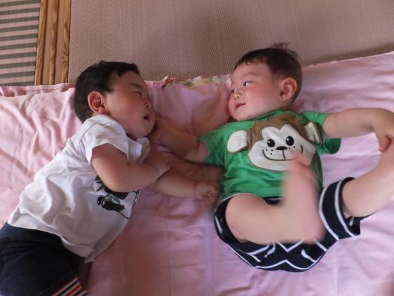 ☆ 4月に入ったこどもたちも大分慣れてきたようです。麦茶も、水も、牛乳も、みんなイヤ、と断固拒否していたRちゃんはすっかり牛乳党になりました。食べるのが下手だった赤ちゃんもおかゆをパクパク、でもお昼寝はちょっと下手、かな。みんな保育園に来るのが楽しい、楽しい、二なってくれると嬉しいね。