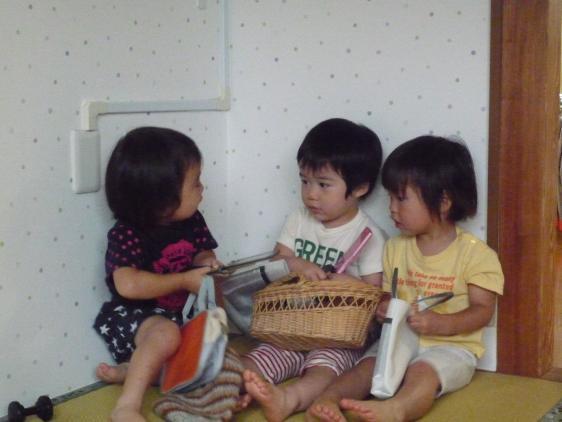 「赤いぐり、ください」人形のしっぽは先まで黄色いのに、絵本のしっぽが黒くなっているのが気になって、なんどもしっぽだけを調べてページを繰っているこもいます。ぐりぐらブーム、いつまで続くかな。