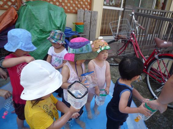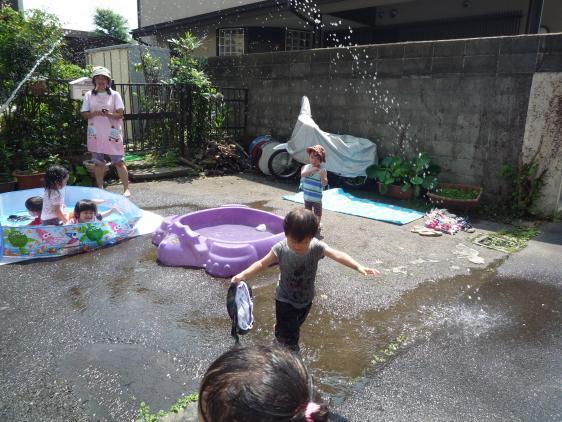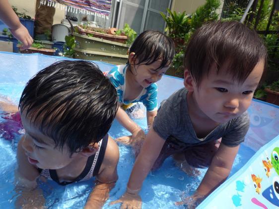 ☆ ひさしぶりの水遊びです。お休みが多くて、プールが広く感じます。女の子に押されていた男の子たちも、どうやら水にはいりおさかなになって泳いだんだって。ゆきこせんせいが水のトンネルも作ってくれたし、明日もたのしみ!晴れるんでしょうね?