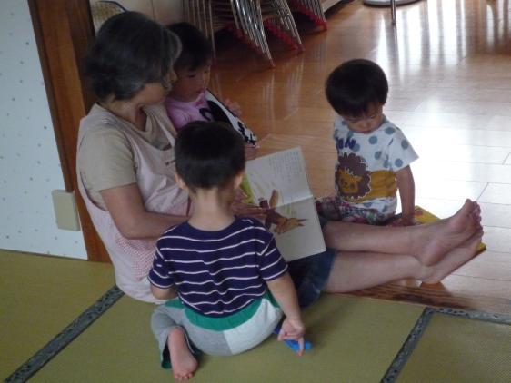 ☆ シーズンごとに絵本の入れ替えをしている保育園。いま一番人気は、やっぱりすいか関係、でしょうか!ありとすいか、すいか、ゆうれいとすいか、ばばばあちゃんにもすいかのはなしがあるし、毎日読まされています。もっともジャンルは選ばないこどもたちですから、好みに任せて手当たり次第、というのがほんとかな! 滑り込みで梅雨明け。梅雨が明けた、というより、梅雨を開けた、という感じがしましたけど・・・。梅雨明けしてもぐずぐず天気、ようやく夏空になった今日は、もう立秋ですよ。蝉のこえもこころなしか威勢よく聞こえ、のうぜんかづらのオレンジ色も、あざやかさを増したようです。