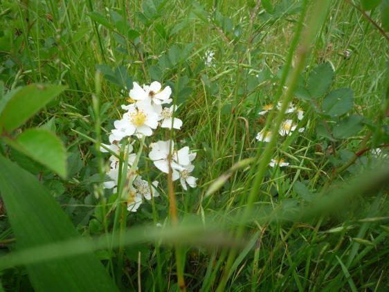 ところで、川のすぐそばや、木の幹に寄りそうような恰好に花をつける野ばらが増えています。川の向こう岸にも、株がふえているような・・・。仕事熱心な公園課(かな?)の方たちがせっせと刈り込むので、道の際に茂っていた野ばらは、実を付ける暇もなく、どんどん減っていました。野ばらは野ばらなりに自衛策をとったんじゃない?、と職員との笑い話です。