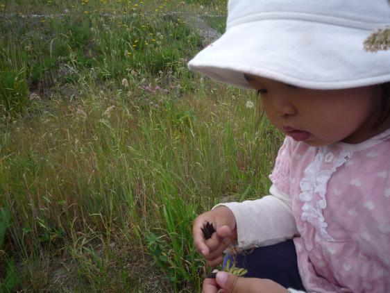 ☆ おともだちと一緒,が楽しくなった2才児さん。なかでも一番おおきいAちゃんは、あこがれのまとらしく、やることなすこと真似している子が約2名!そのうちのひとりをつかまえて、苦言を呈しました。Rちゃん、RちゃんはAちゃんがころんで、いたたた、っていってたら、真似してころぶの?ウン!Aちゃんが川にドボン、ってしたら真似してドボンするの?ウン!(やれやれ、これは通じてないぞ、)なんでも真似するのって、真似っこ小猿でかっこわるいんだよ、なんでもまねするんじゃないの!ウン!