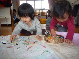 ☆ 2,3歳クラスはもうすぐ、さよならの季節。新しい幼稚園、保育園、楽しみだけどちょっぴり心配。でも、そんなことはもう少し忘れて、遊びます。そのうるさいこと、うるさいこと・・・わたしは耳がへんになりそうです!!