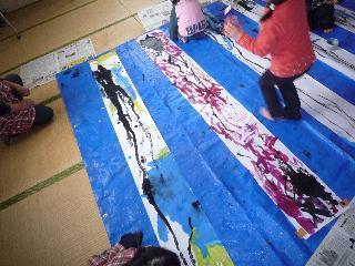 わっ、ながーい!障子紙に蛇をかくんだって!みんな、かきました、まっくろな墨で、青、黄、赤の絵具で。いつものおしゃべりはどこへやら、みんな真剣に、集中、集中!