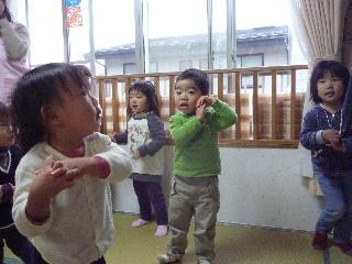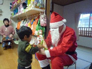 ☆ 今日はクリスマス。いつものことながらサンタクロースが来てくれるのかどうか、心配でした。(といっても心配したのは、先生たちだけだったのかもしれないね。)いまいち生活態度に問題アリ、が多かったもので・・・。でも、来ましたよ、サンタクロース!大きな袋にプレゼントをつめ、サンタクロースそのひとが目の前にあらわれたときには、みんなの目がとびだしそうでした。緊張で、幾分ぎくしゃくしていたものの、泣くこともなくサンタクロースのところに行き、ひとりずつプレゼントをいただいてホッ!やっと嬉しそうな、笑顔がこぼれます。お礼のダンスをしたり、一緒に記念撮影をしたりして、サンタクロースにさようなら。