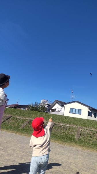 「とんでる~」と なにもなさそうな 上空を ゆびさす Aさん…目を凝らしてみると