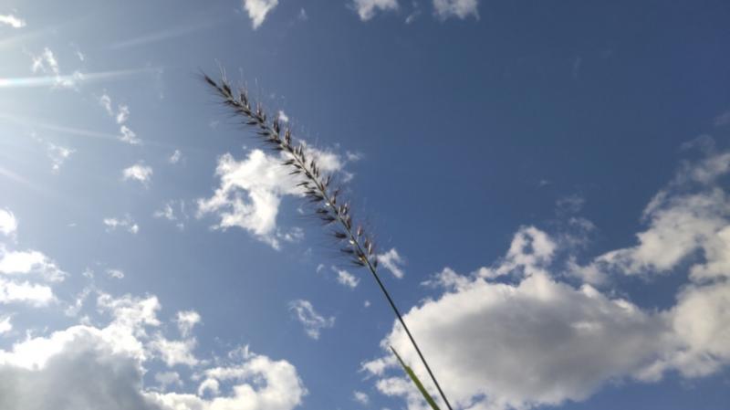 チカラシバを 空に 向かって ぐるぐる 回す Oさん