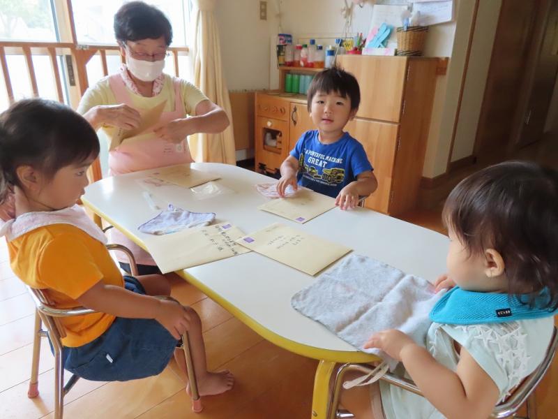 そんななか、もうすぐ、敬老の日、ということでおじいちゃん、おばあちゃんにあげるプレゼント制作に励んでいたのですが、