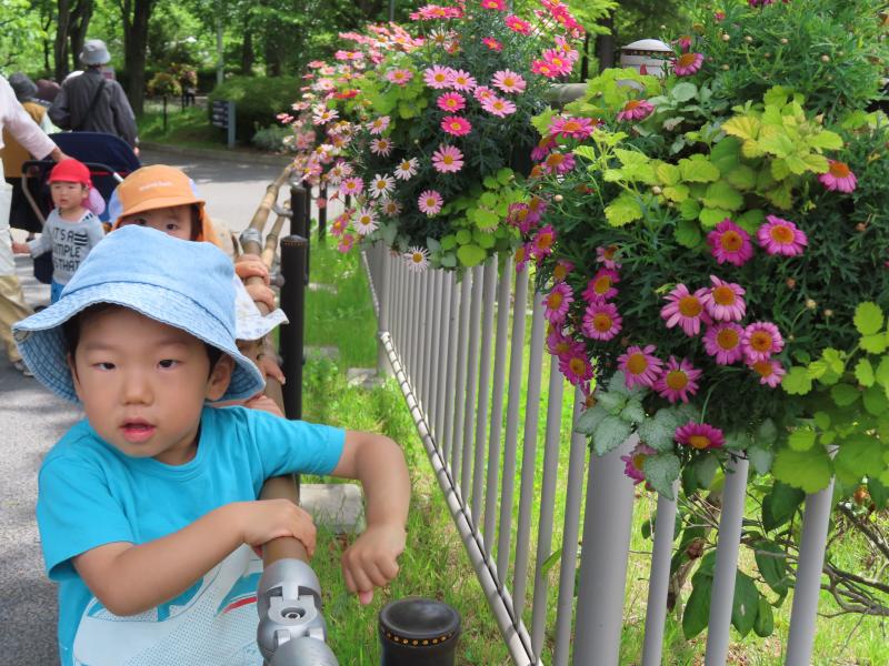 自分から『お花と一緒に写真撮って♪』とリクエストするお友だちも。色んなお花があって『きれいだね』とお話しながらみてきました☆