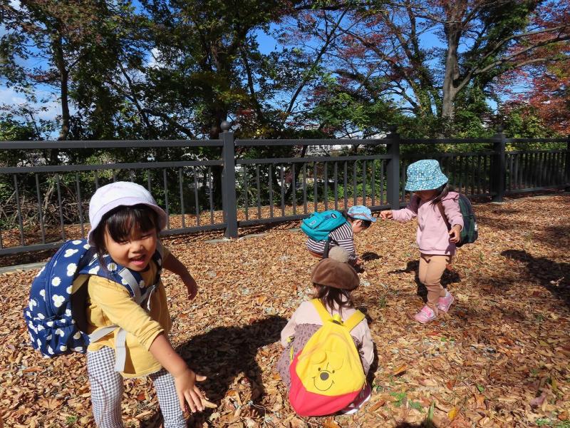 西公園にはドングリや松ぼっくりがたくさん落ちていて…