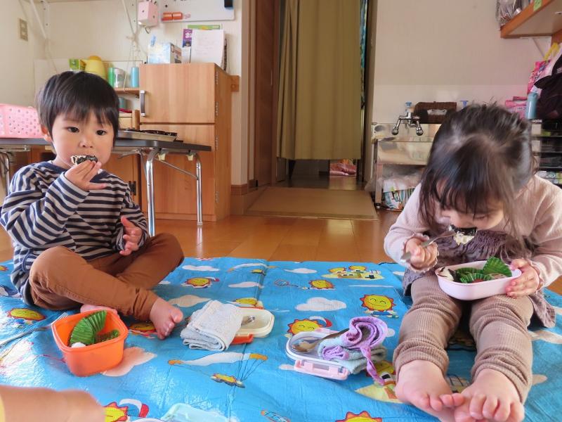 保育室にシートを広げて美味しく食べました。