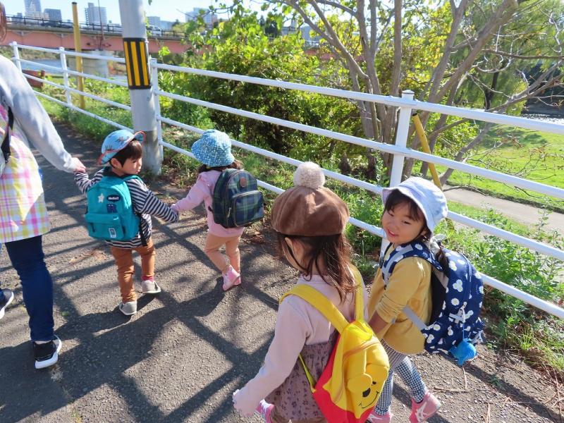 先日、2才児クラスのこどもたちが「遠足ごっこ」をしてきました。