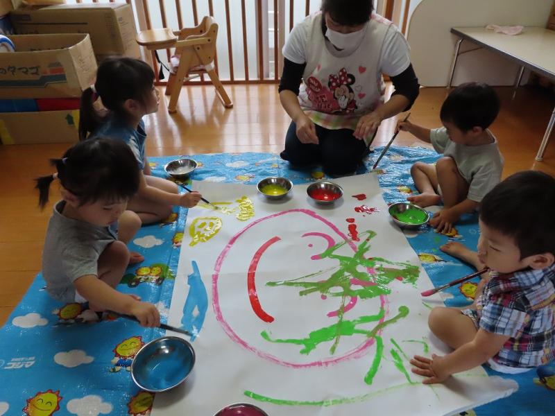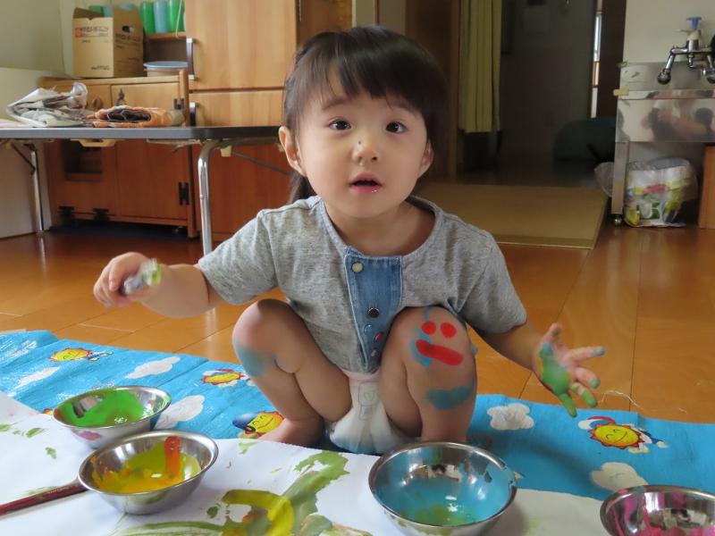 魚釣り大会と絵の具遊び、すごいことになってる子もいますね。