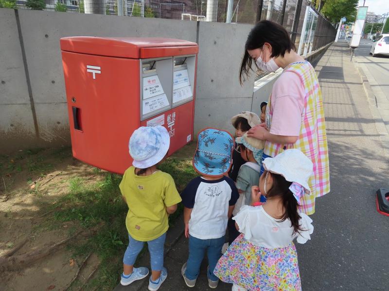 昨日のお散歩では、出来上がったお手紙を持ってポストへ出発。