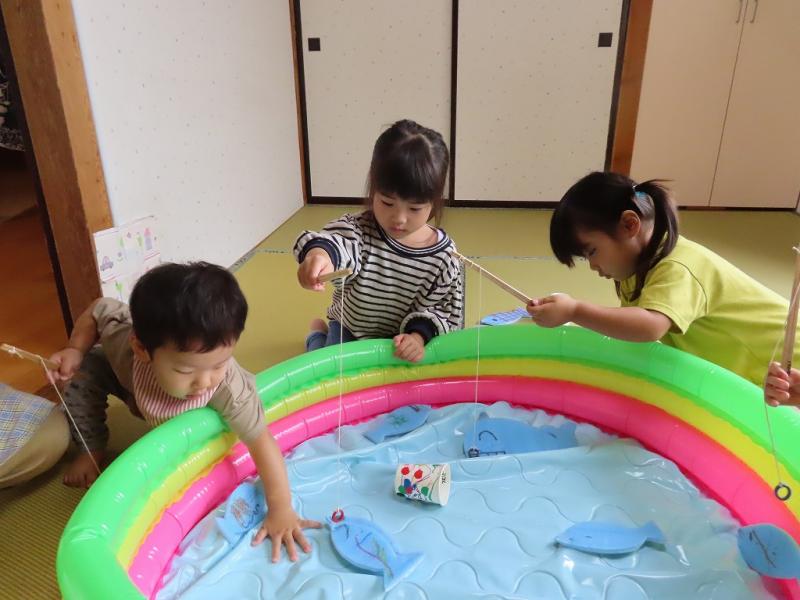 魚釣り、絵の具遊び、みんな張り切って参加していました。
