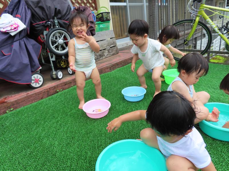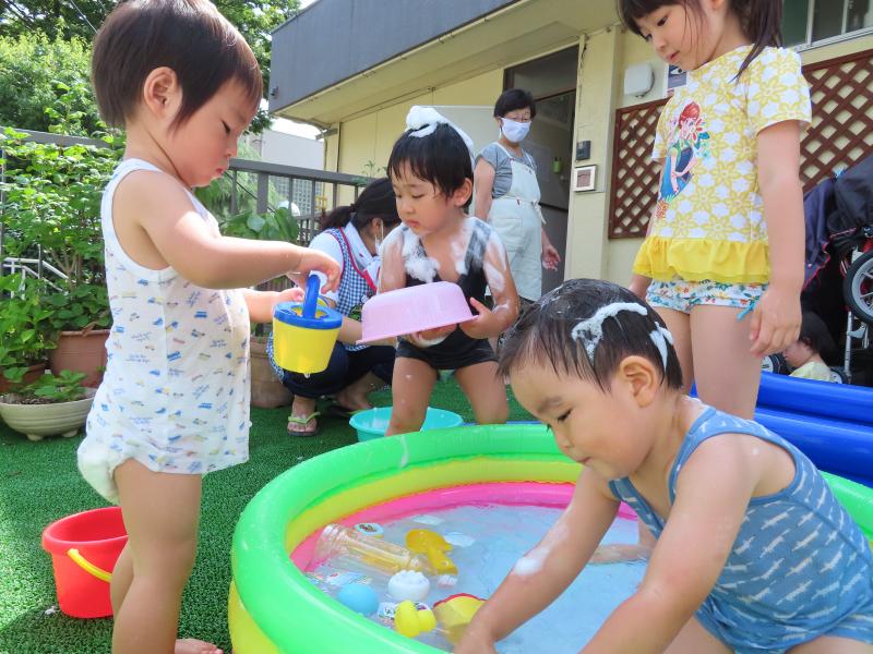 ※写真は泡あそびと最近の水あそびの様子です