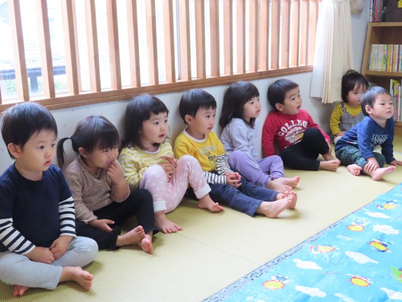 そんな姿を遠くからひっそり見ていた1歳児クラスの子どもたちは、興味津々。