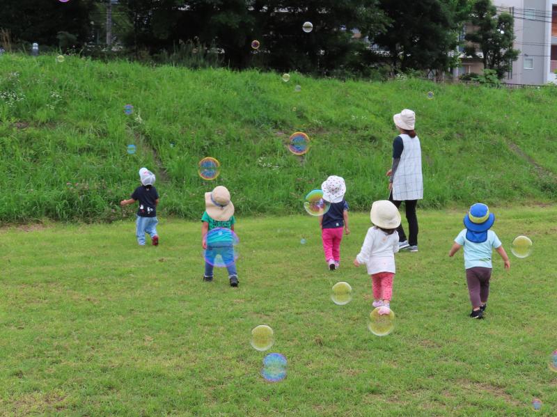 つかめそうでつかめない・・・!そんなシャボン玉を追いかけて走っていく子どもたちの姿はとっても可愛かったですよ!