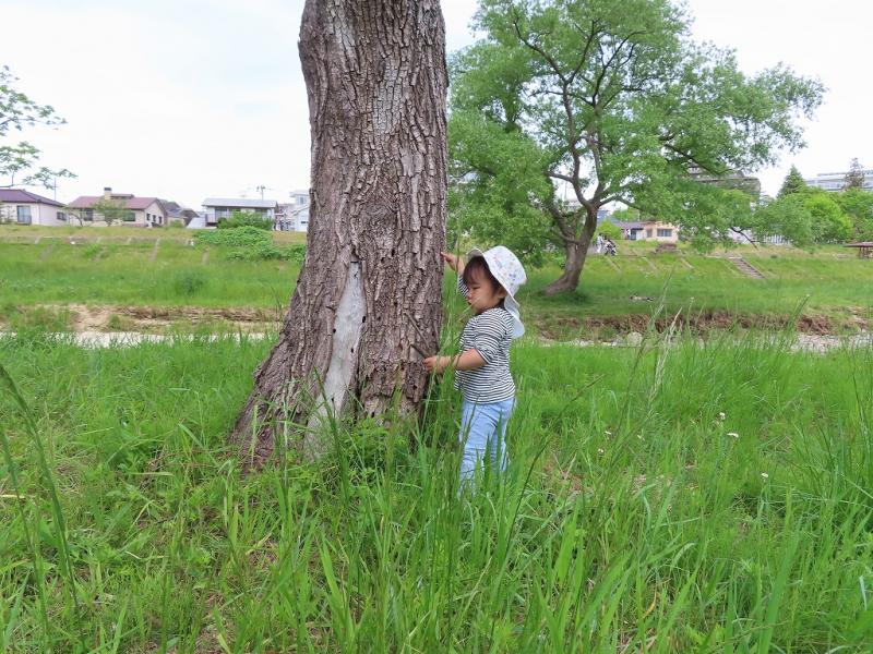 写真1)広瀬川の中州に遊びに行ったよ♪とっても大きい木だねぇ