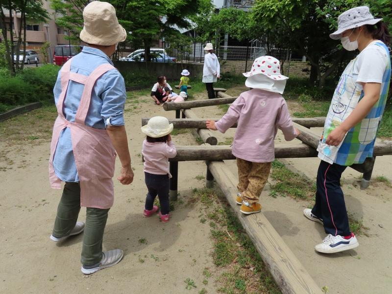 平均台(?)を渡ったり、蟻さんの巣をほじくったり、それはそれで楽しいお散歩タイム、