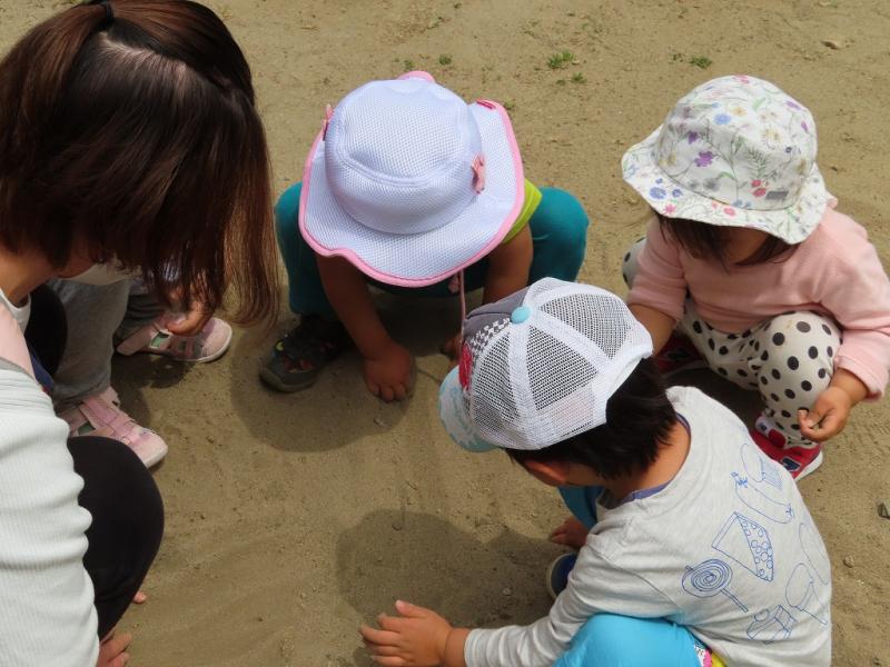 特に、てんとう虫が一匹でも見つかると、見せて!見せて!とみんなで顔を寄せ合って見つめ、誰がてんとう虫を手に乗せるか、と小さな戦いが起ることも・・・