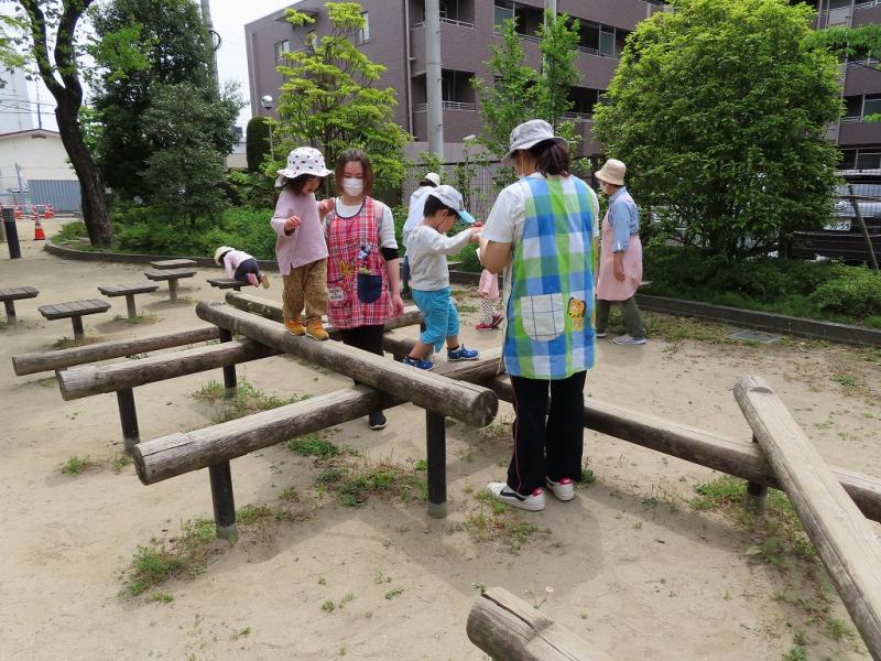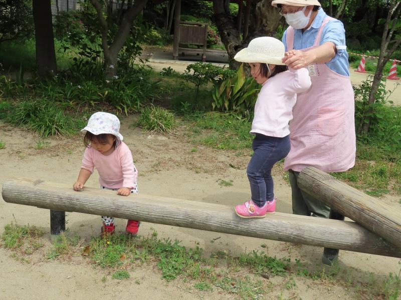 平均台(?)を渡ったり、蟻さんの巣をほじくったり、それはそれで楽しいお散歩タイム、