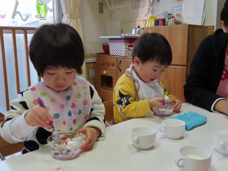 ちょっぴり特別なおやつを食べて、満足そうなこどもたちでした!